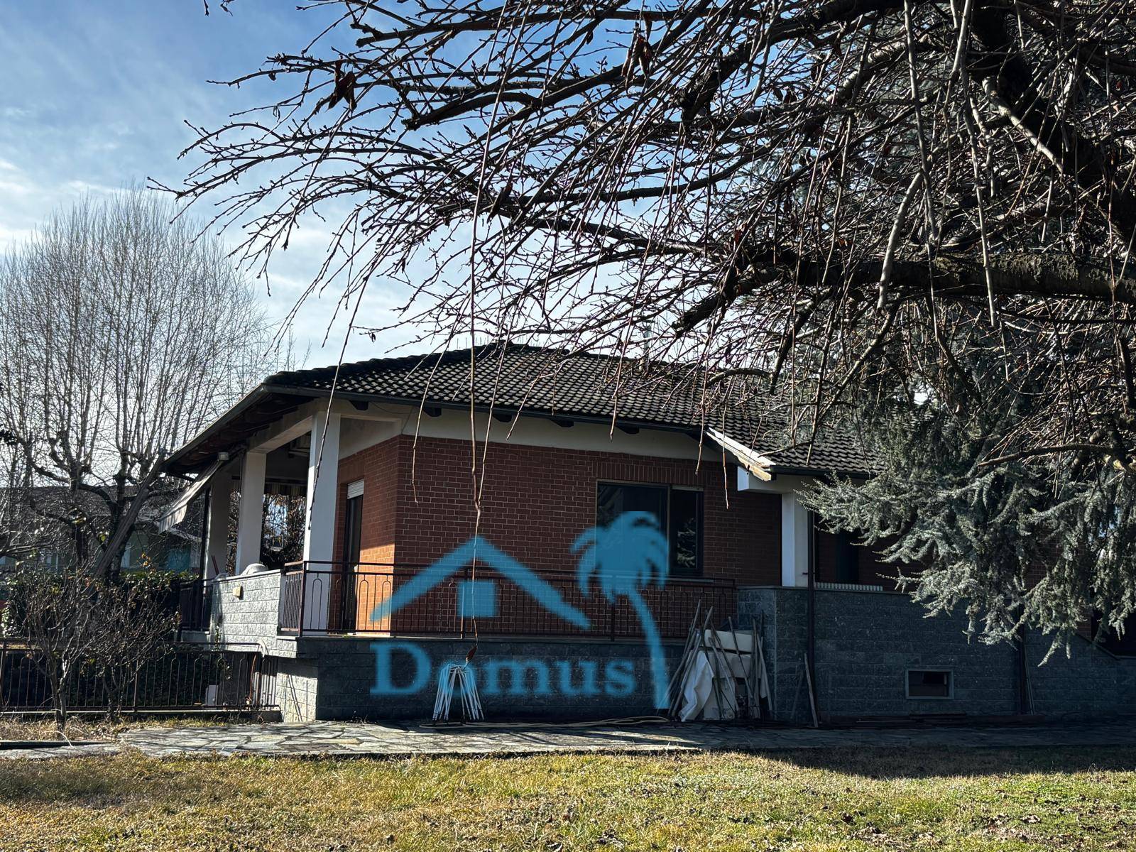 Frossasco, zona bivio, comoda al collegamento tra Pinerolo e Torino, villetta indipendente 4 lati disposta su 2 livelli circondata da un parco piantumato di 3.500 mq, al piano rialzato Ingresso su salone e cucina con affaccio su terrazzo, 3 camere in parquet, doppi servizi, al piano interrato ampio locale sgombero uso tavernetta e box auto. € 214.000